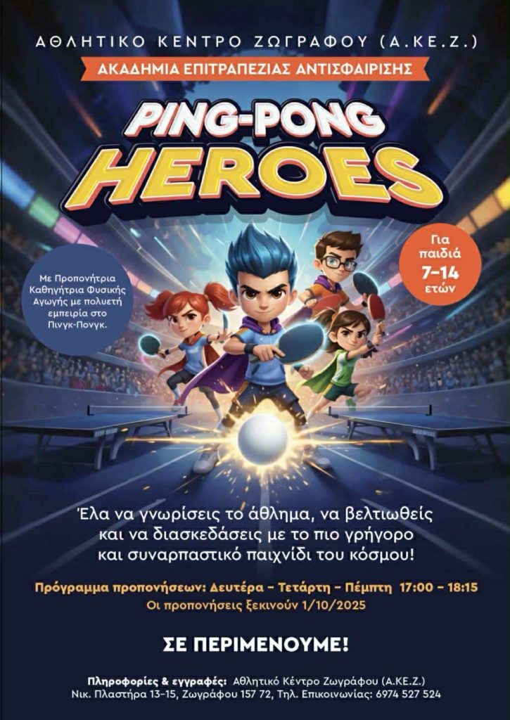 Όποια ηλικία και αν έχετε, ελάτε κάθε Δευτέρα – Τρίτη – Τετάρτη – Πέμπτη 18.30 – 20.30 και κάθε στο σύλλογό μας (Στρατηγού Νικολάου Πλαστήρα 13-15, Ζωγράφου, Αθήνα) να ξαναθυμηθείτε το όμορφο άθλημα των παιδικών σας χρόνων, να γυμνάσετε το σώμα σας και να ξεφύγετε από την καθημερινότητα!